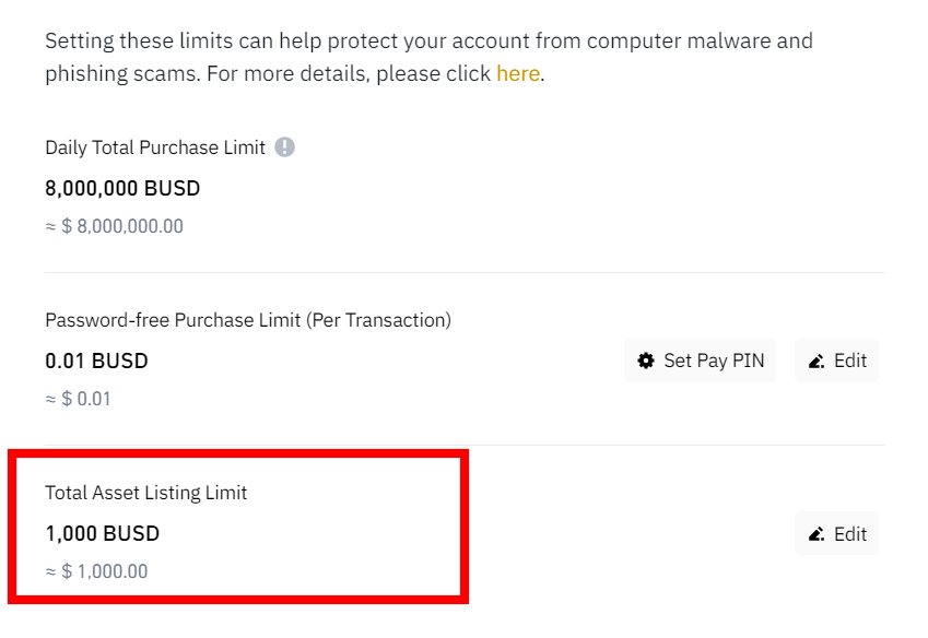 إذا كان لديك رموز على الحساب قم بتعديل خيار Total Asset Listing Limit بنفس الطريقة أيضًا.