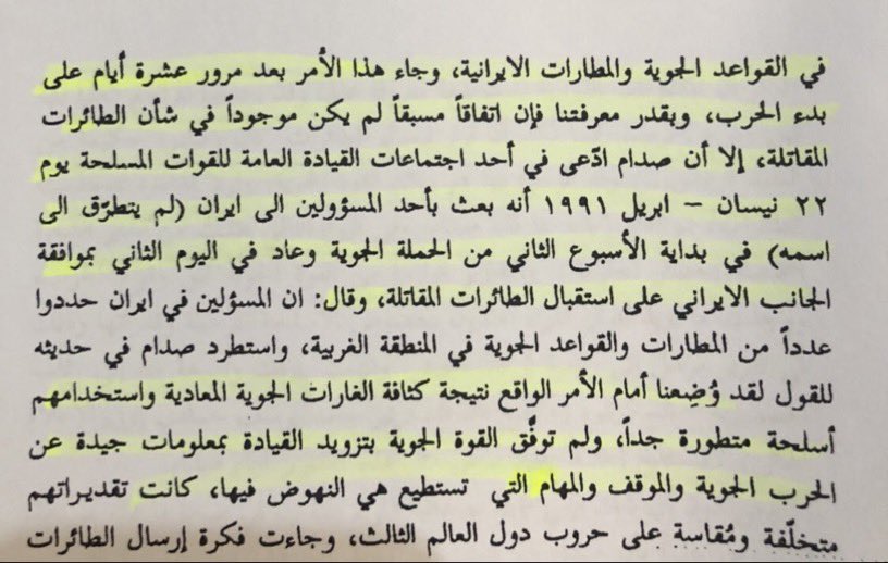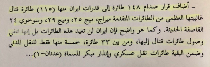 ▪️علناً على مبادرة صدام العلنية بإعادة اقرار اتفاقية الجزائر لعام 1975 ورسالته المشهورة ذات الطابع الإستسلامي.. "وهذا كل ما أردتموه يا سيادة الأخ الرئيس .."مع وصول الطائرات المقاتلة الأولى إلى ايران أخبرت الإستخبارات صدام مباشرة وتحريرياً بأقوال الضباط الطيارين