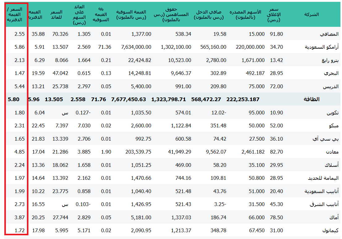 طيب هل اقدر احصل على مضاعف القيمة الدفترية مباشرة وبدون ما أحسبه لكل سهم