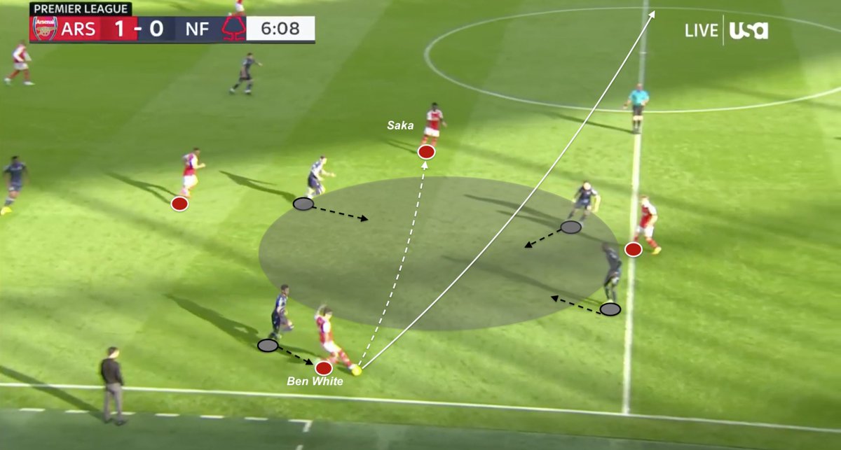 Ben White impressive on-ball qualities had been also another huge alternative to overthrow Forest's off-the-ball animation. His ability to scan his closest environment influence a lot his decision-making in his passes.