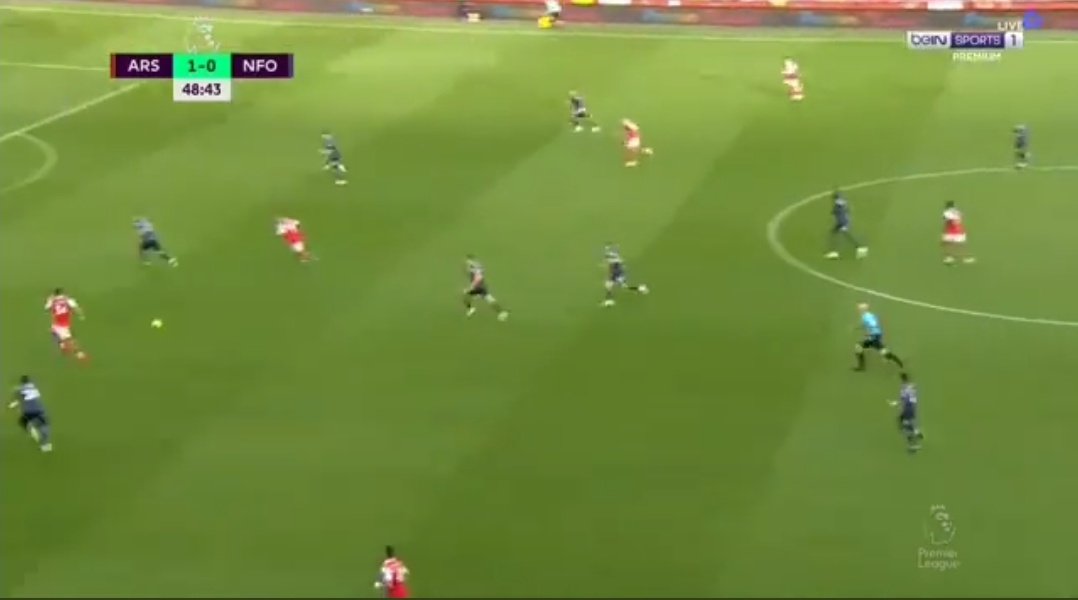 ليه ممكن على اليمين نلعب بظهير بيطلع و يساهم و يكون overlapping و ليه الكلام دا مش حيظبط في الجهة اليسار .. الإجابة بإختصار هو دور تشاكا في إستغلال أنصاف المساحات و التقدم بشكل مبالغ فيه بطلب من ارتيتا ( في الحالة دي صعب جداً يكون عندك ظهير ايسر تقليدي بيمسك الخط )
