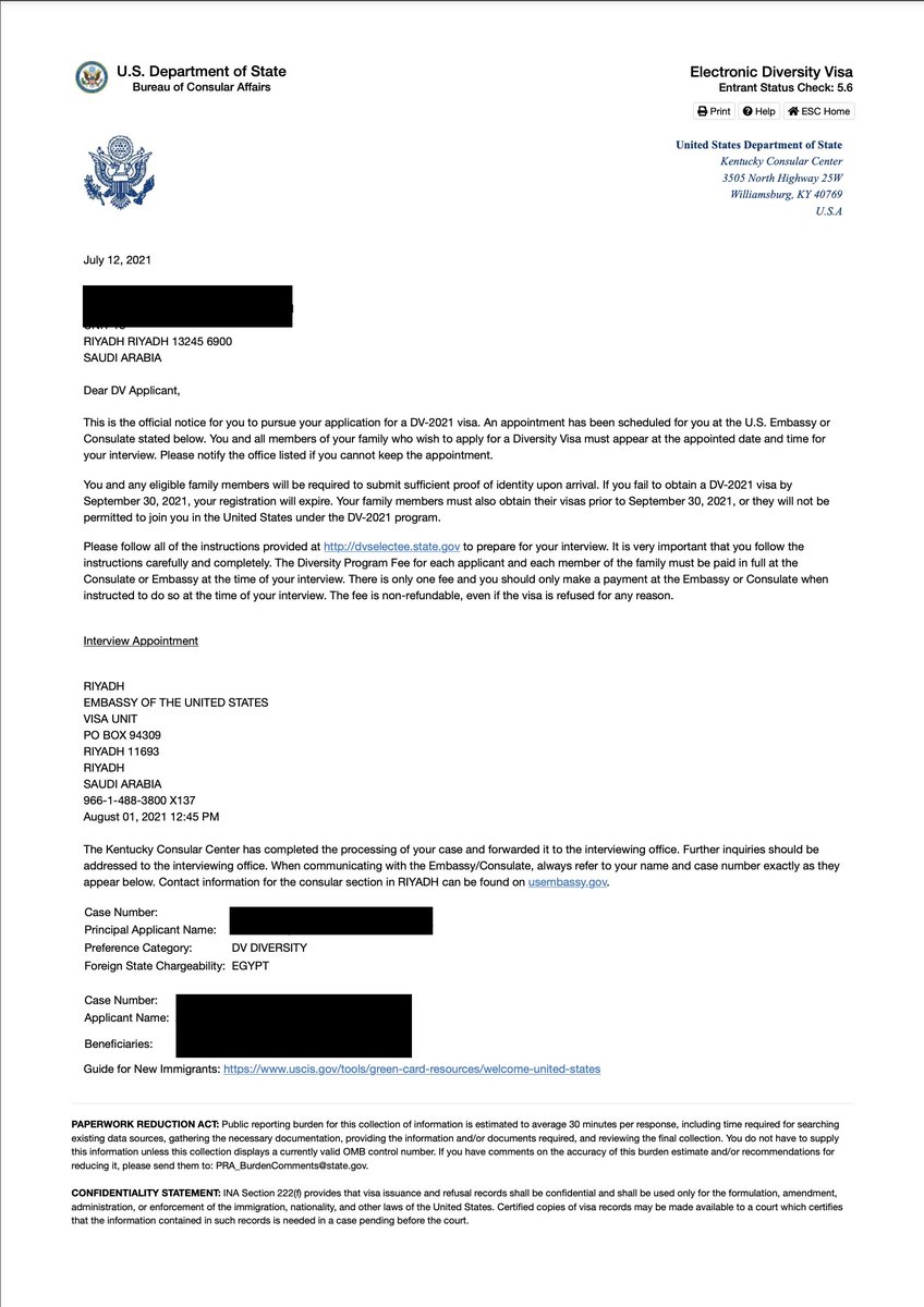 (3) كنت من المحظوظين اللي تم اختيارهم عشوائيًا في DV-2021، تم التقديم في شهر أكتوبر 2019 وظهرت النتيجة في شهر يونيو 2020 خلال فترة كوفيد 19، واللي صاحبها وقتها قفل السفارات حول العالم وبالتالي تأخير المقابلات الشخصية في السفارات، وأيضًا كان هناك حظر هجرة أصدره ترامب وقتها!