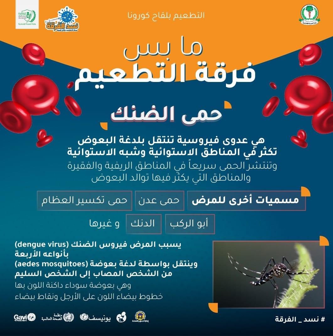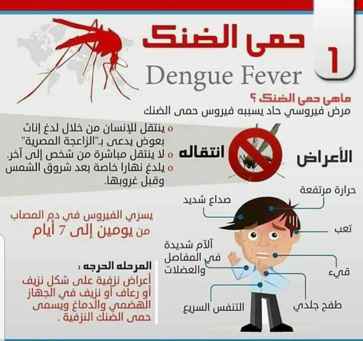 بعوضة حمى الضنك تسمى الزاعجة المصرية و القراص وهي لاتطير ابعد من 150 الي200متر حمى الضنك هي مرض يُنقل بالبعوض وينتشر في المناطق الاستوائية وشبه الاستوائية من العالم
