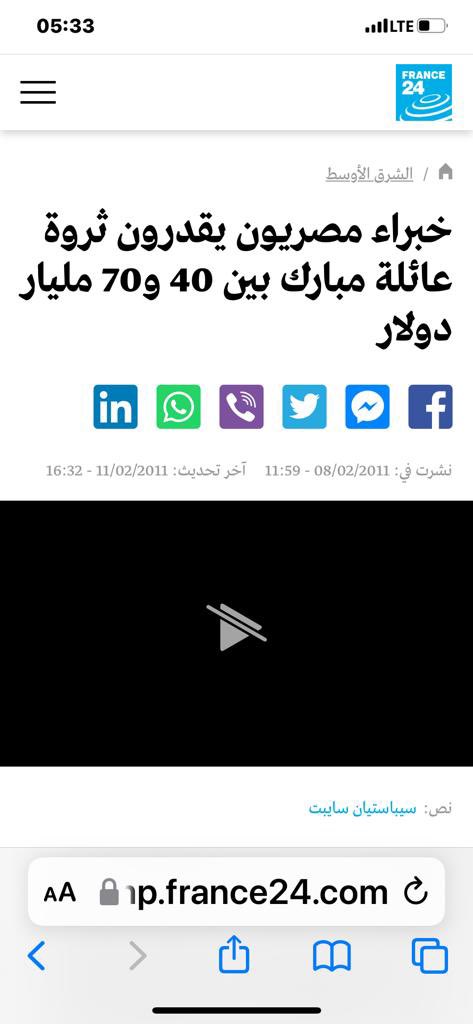 والتي أشاعت امتلاك حسني مبارك وأسرته ثروة بلغت 70 مليار$.