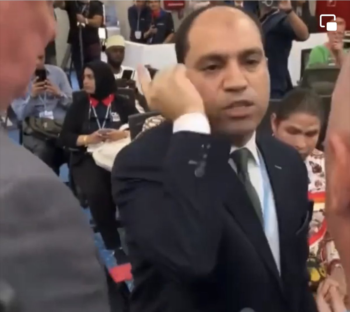 الجهة المسؤولة عن المؤتمر هى الأمم المتحدة وطبيعي يطردوا هذا الغبي الذي حاول إفساد مؤتمر سناء.