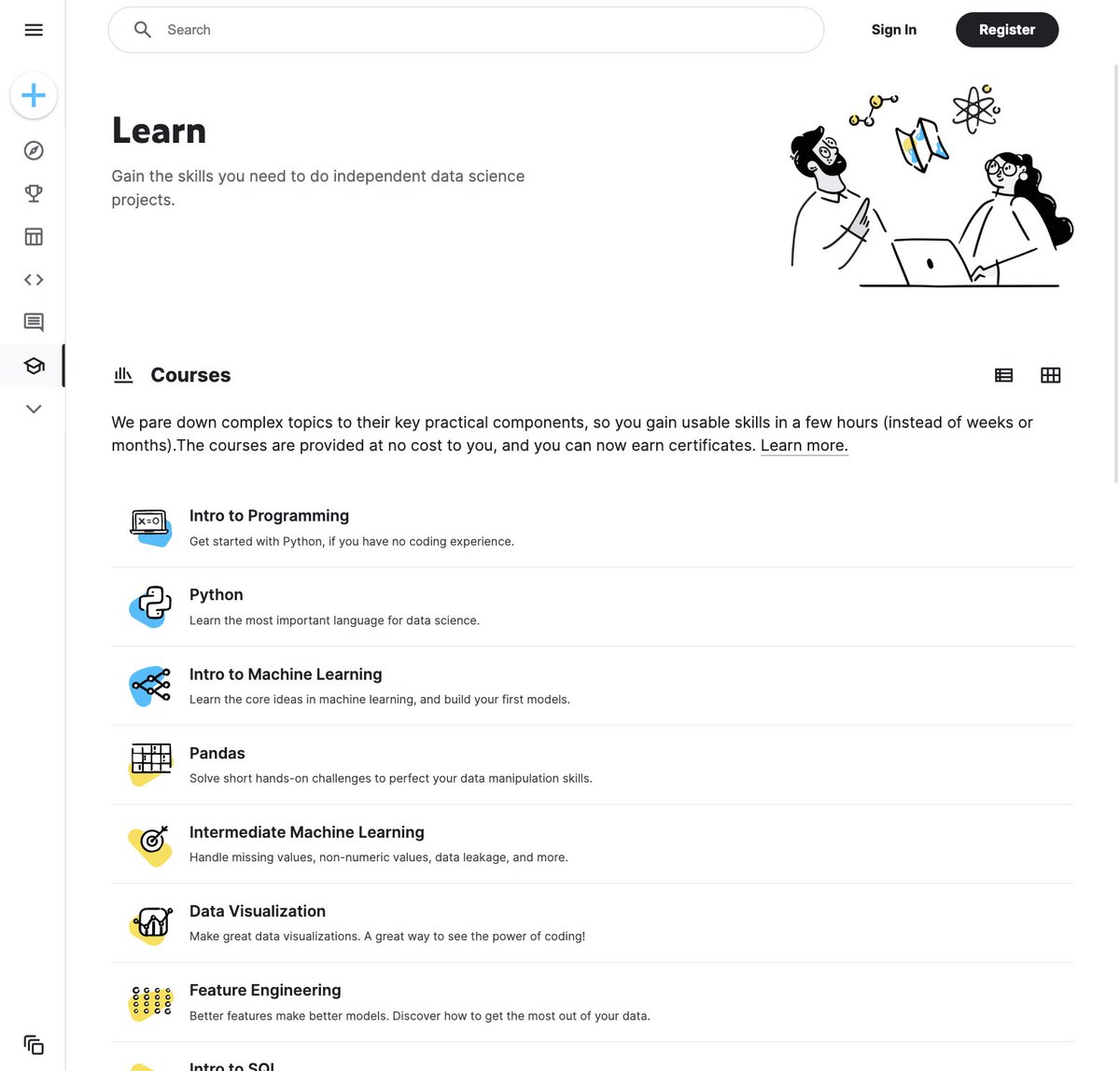 Kaggle is an excellent platform providing exercise-based courses for Data Science.
