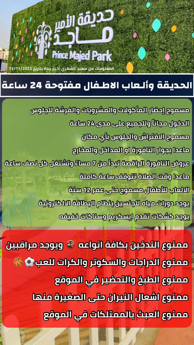• يتم تشغيل النظام الصوتي بكافة الحديقة بأغاني وطنية او اغاني عن #جدة الحبيبة 💕