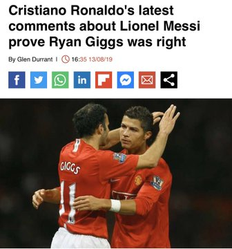 صرح زميله السابق رايان جيجز في عام 2018: "رونالدو مهووس بكونه ميسي ، لا توجد طريقتان لذلك"