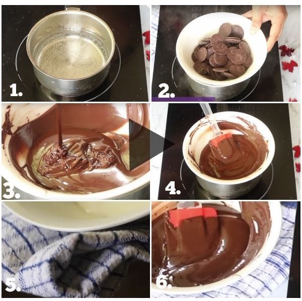 ٥- نغمس الفراولة بالشوكولاته السائحة ونصفها على ورق زبدة وندخلها الثلاجة ٣٠ دقيقة