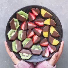 طبعاً فاكهة + شوكولاته دارك سعراتها اعلى من الفاكهة لحالها