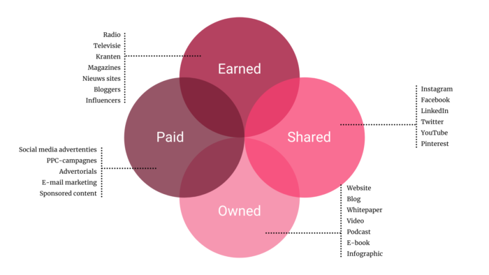 الوسائط المشتركة:Shared Media أو الوسائط الاجتماعية، وهي تستمر في بناء ما هو أبعد من مجرد التسويق أو فرق خدمة العملاء التي تستخدمها. وتمثل المجتمع والتوزيع والترويج.