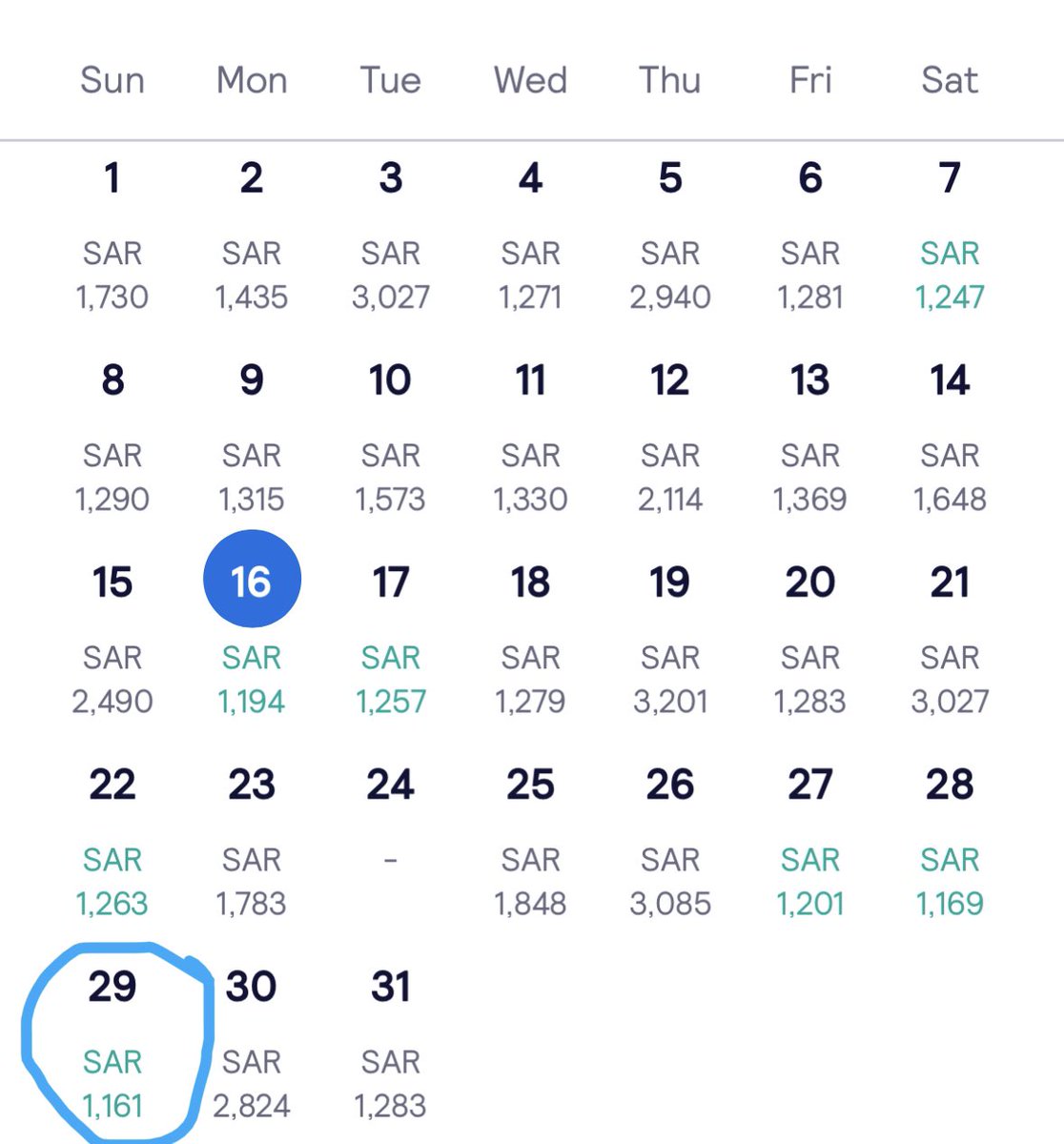 بعدها هو بيديني التواريخ السعر التذكرة فيها رخيص وانا بختار أرخص شي.