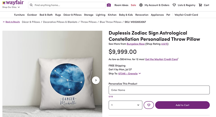 وكانت عن طريق احد المستخدمين نشر على موقع ريديت صورة لأحد الوسادات التي تباع بالموقع وكانت معروضة بسعر 9,999دولار!