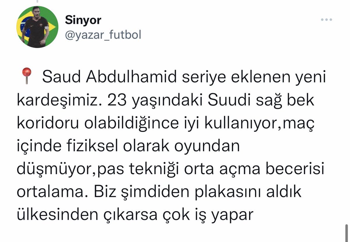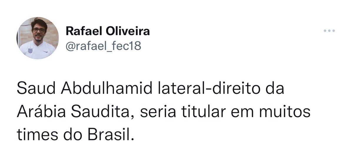 "سعود عبدالحميد، ياله من ظهير تمتلكه السعوديه! اتمنى يكون هنالك مجال بأن يلعب في أوروبا".