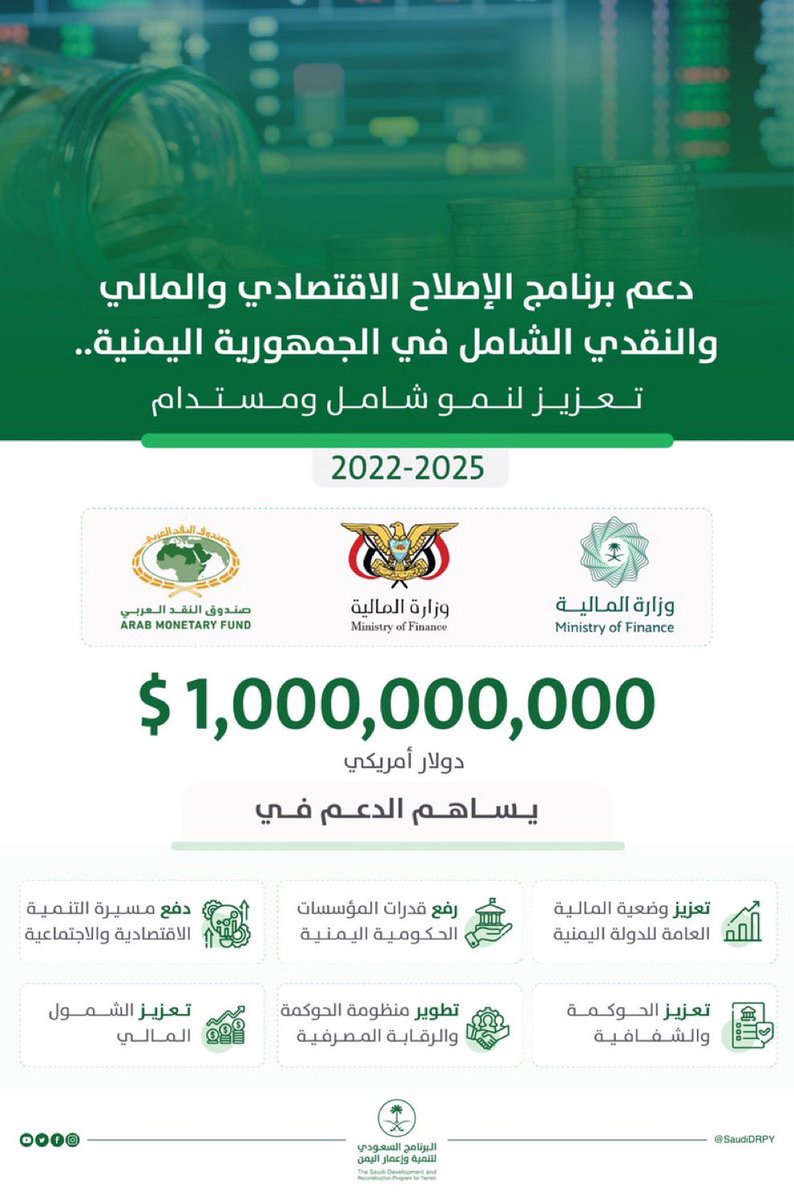 1_نثمن الدعم السخي والمتواصل من الاشقاء في المملكة🇸🇦 لليمن في مختلف الجوانب،والذي توج اليوم بتوقيع الجانب الحكومي، مع صندوق النقد العربي كجهة فنية مساندة،بحضور معالي @MAAljadaan و @mohdsalj اتفاقا لدعم برنامج الإصلاح الاقتصادي والمالي والنقدي الشامل لليمن بقيمة مليار دولار امريكي