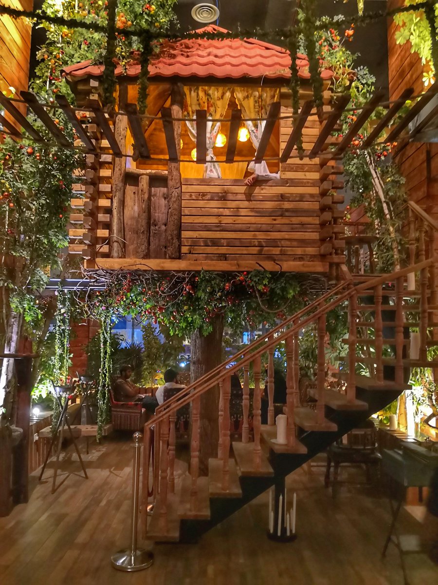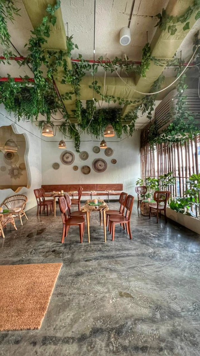 نباتات تغطي السقف والمكان مزين بأغصان البامبو و الخيزران 🍁