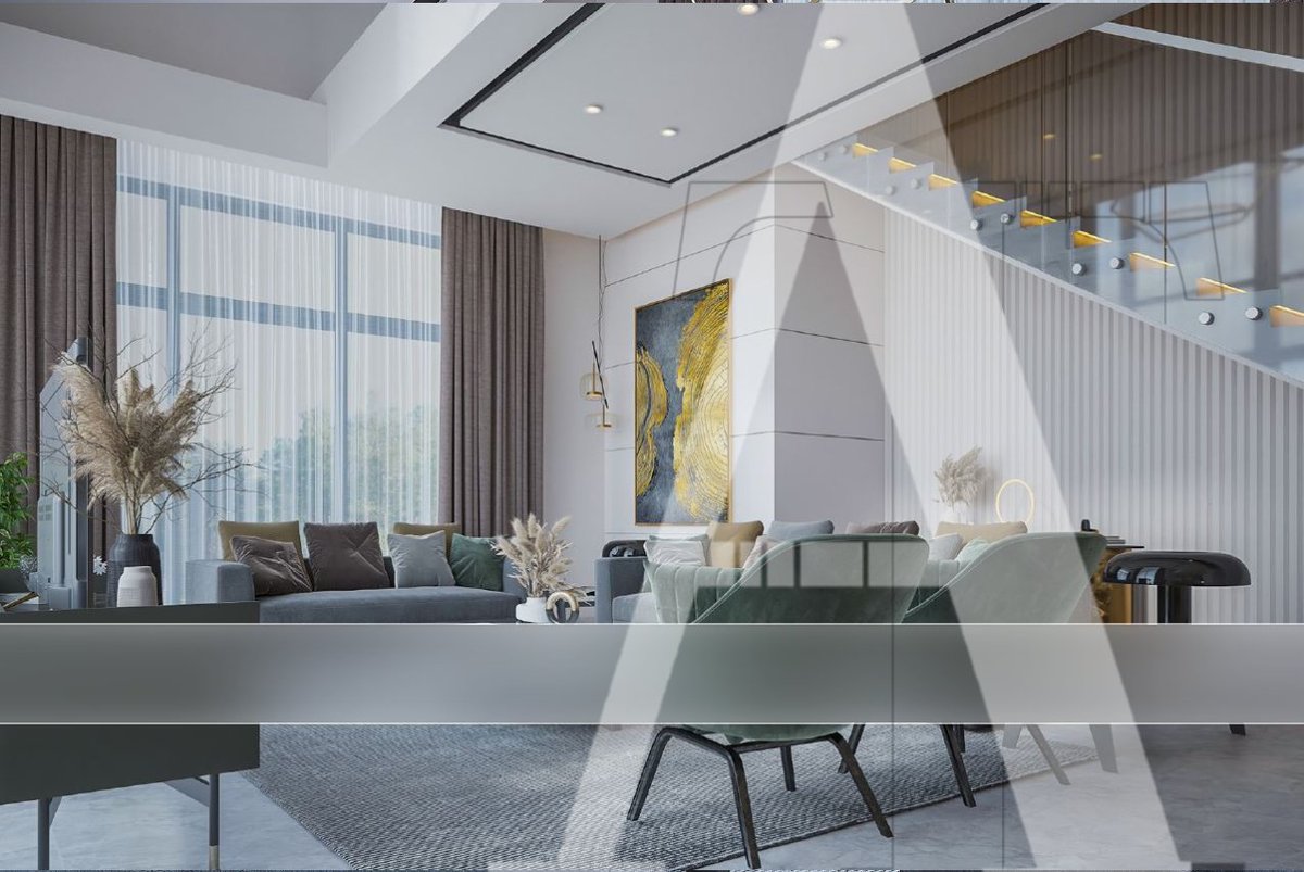 أما هنا فترى التصميم الداخلي لصالة الجلوس الرئيسية