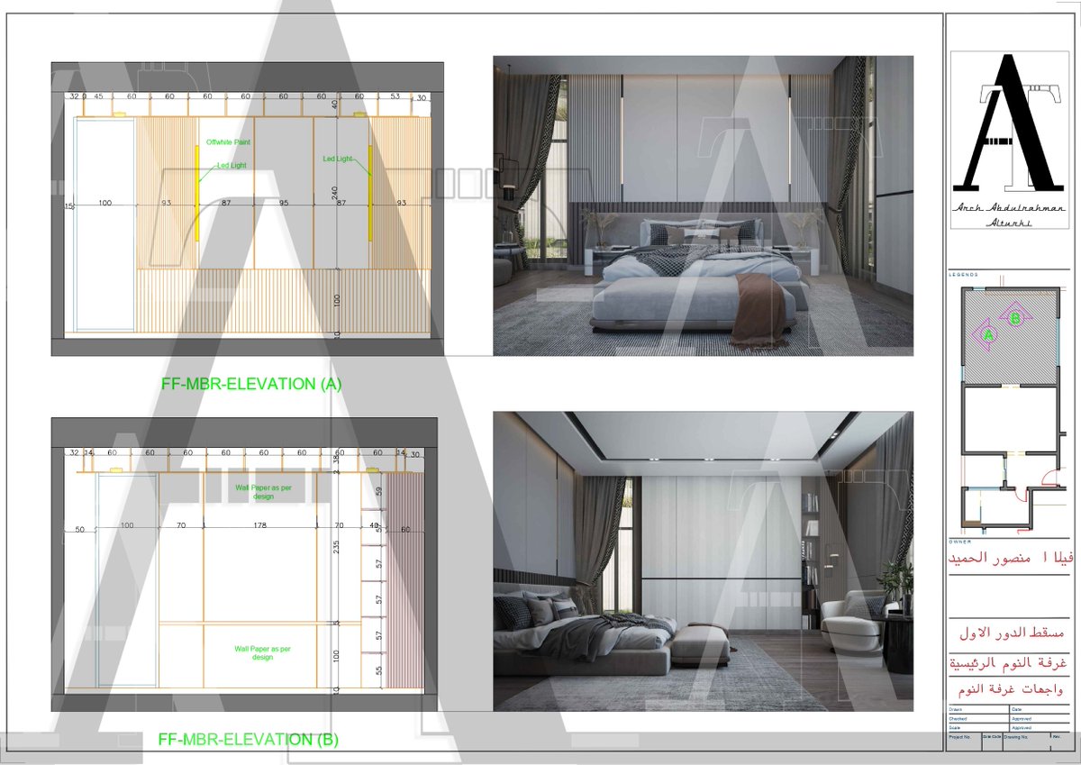 وهنا جزء من تفاصيل المخططات التنفيذية لجناح النوم الرئيسي