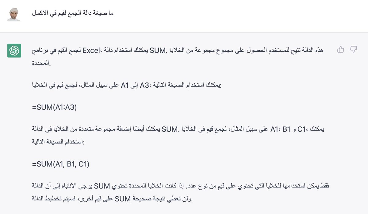 مع #ChatGPT يمكنك الوصول إلى الدوال في برنامج Excel بسهولة، عليك فقط كتابة ما تريد وسوف تتولى الاداة توفير الدالة مع مثال عليها. كما يمكن تحديد الخلايا التي تريد تنفيذ العمليات عليها وسوف يظهر الدالة مع خلاياها المحددة عليك نسخها ولصقها في خانة تنفيذ التعليمات في Excel
