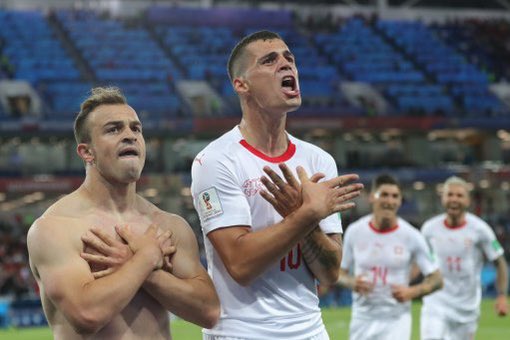 على سبيل المثال الفيديو هذا واللي يوثق لحظة طرد مشجعة قامت بحركة النسر المزدوج في مباراة #سويسرا_صربيا