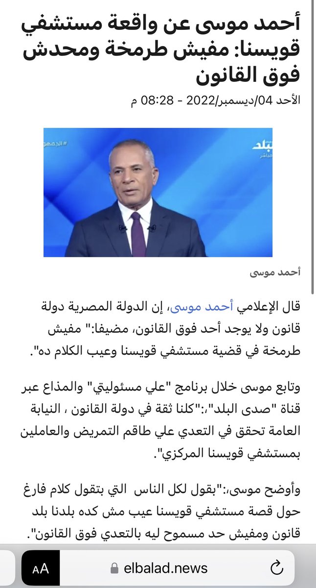 رواية عمرو أديب لحادث مستشفى قويسنا تربط بين الضابط والعنف داخل المستشفى.