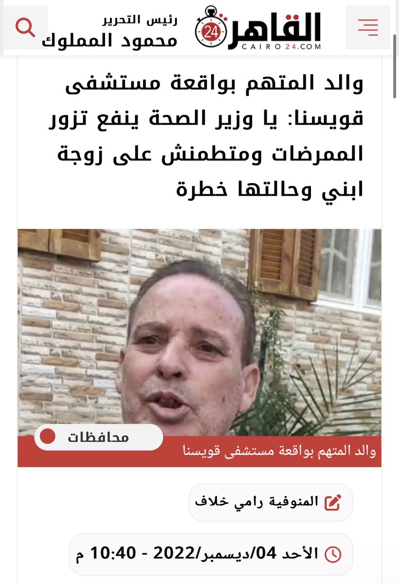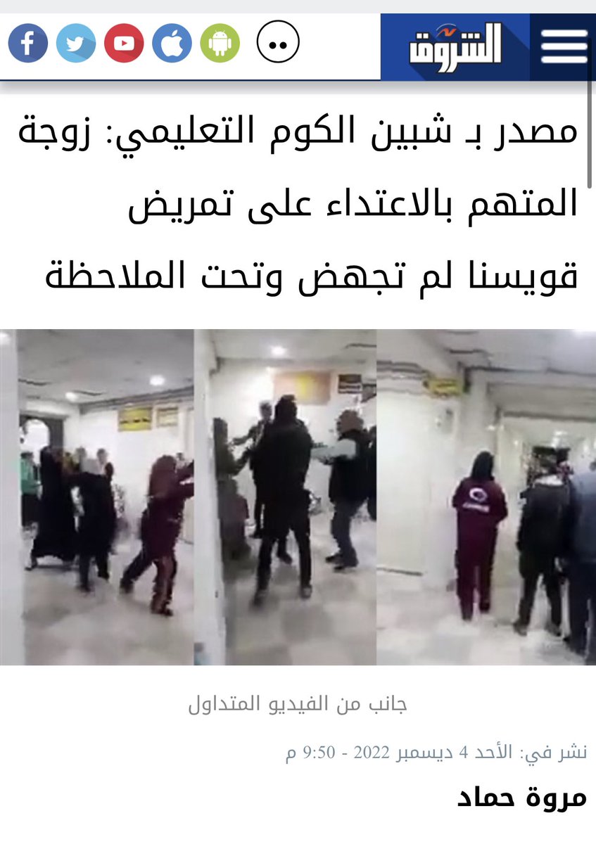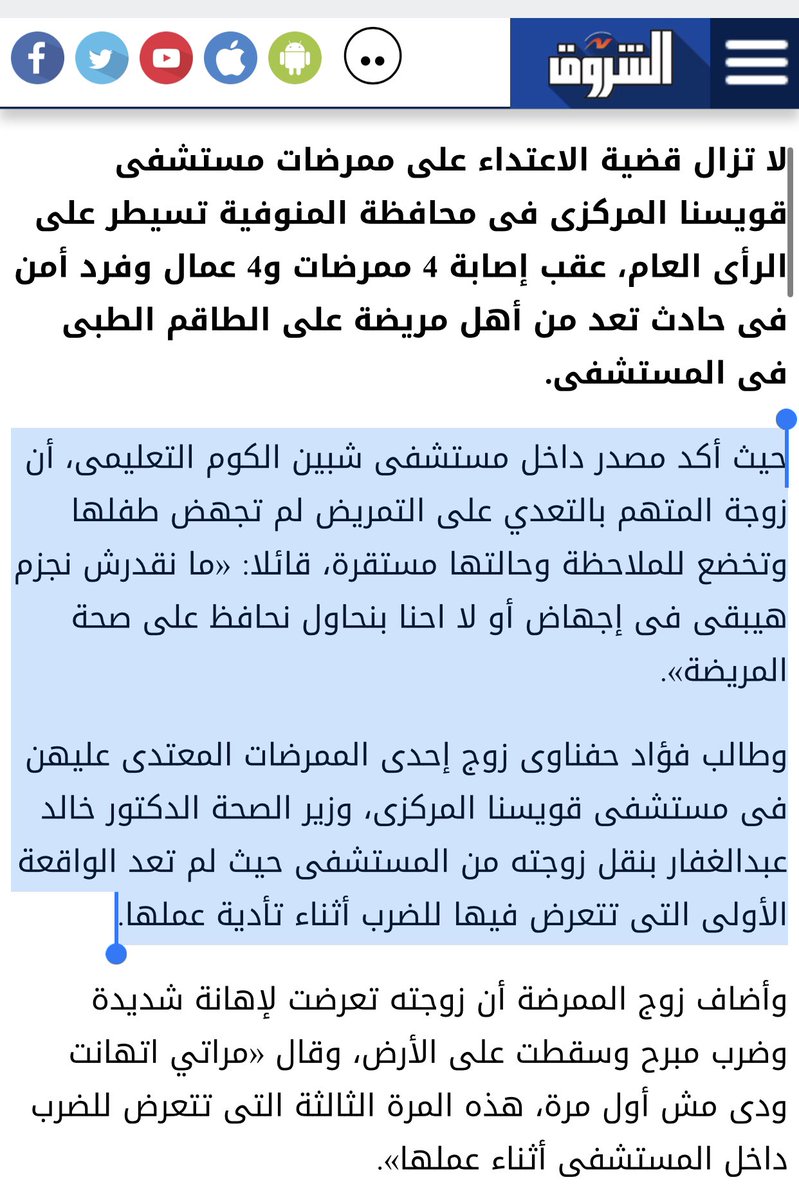 عن حادث الاعتداء على الطاقم الطبي في مستشفى قويسنا.