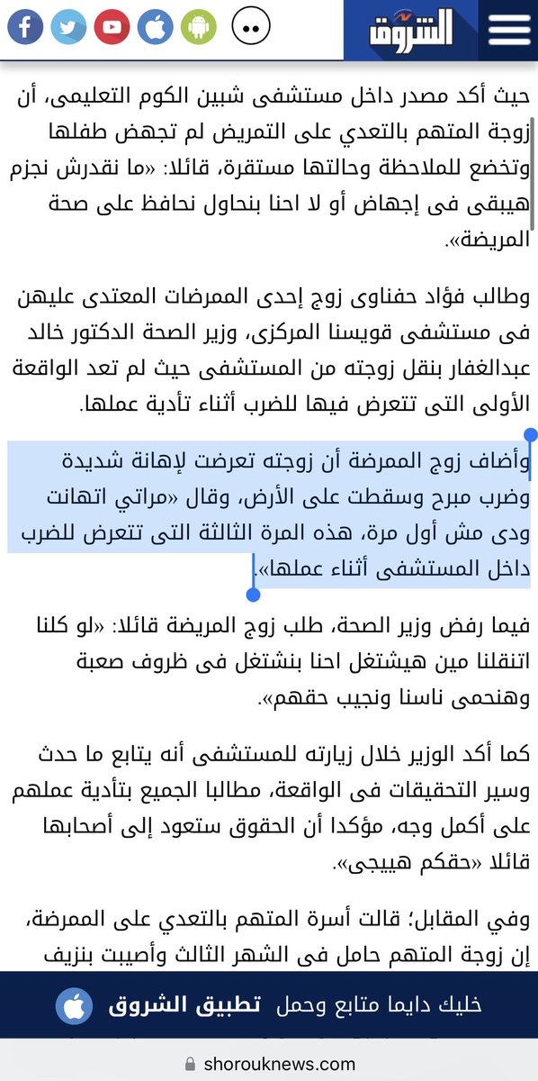 الشروق هى الأفضل بين الصحف المصرية في تغطية حادث الاعتداء على ممرضات قويسنا.