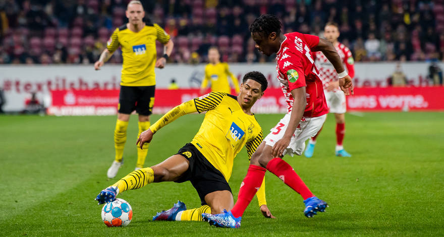 أسيست بيلينجهام هنا في الدوري الألماني للشاب الأخر "يوسوفا موكوكو"، شيء رائع، تمريرة من مسافة بعيدة بشكل أرضي خرافي.