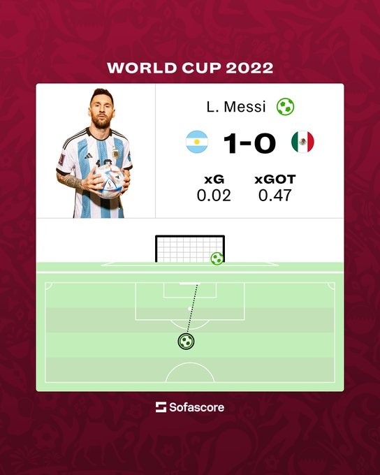 ميسي سجل هدفين من لعب مفتوح في كأس العالم 2022، الهدفين مجموعة الـ xG لهم = 0.06