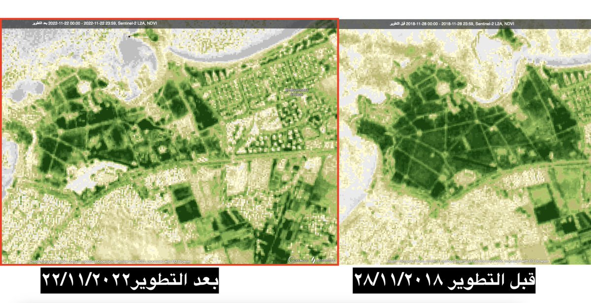 الصورتين اخر نوفمبر في ٢٠١٨ و ٢٠٢٢ المصدر: @sentinel_hub