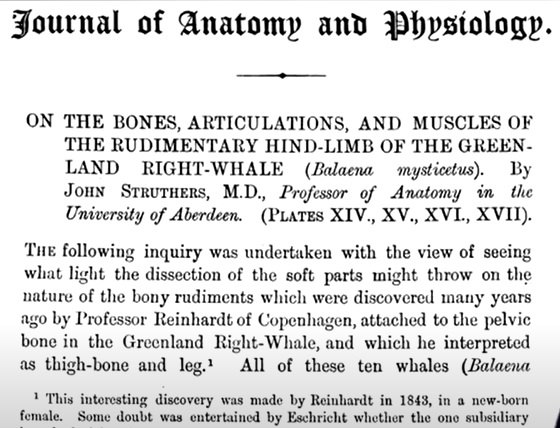 وعلاقتها بالاعضاء الجنسية للحيتان, والمهم أن ستروثرز وقبل أكثر من 130 عام من الان تكلم عن هذه العظام بالتفصيل ومن بعده الكثير من الباحثين ليأكدوا الحقيقة ذاتها في ابحاثهم المنشورة