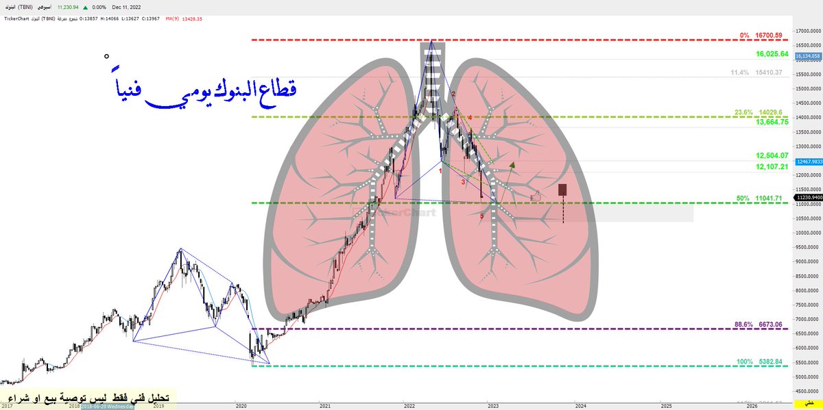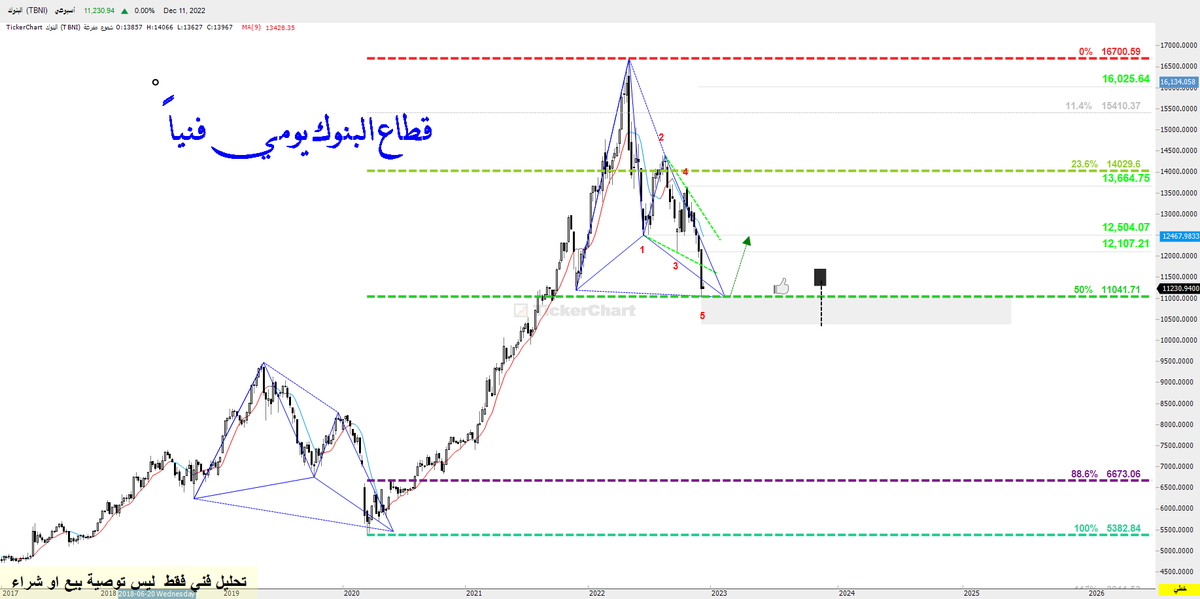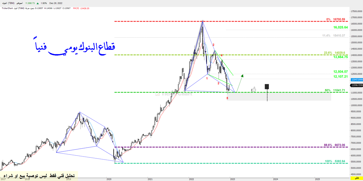 قطاع البنوك حسب السيناريو بعد الوصول لمنطقة الخمسين فيبو اول شمعة جيدة مقاومة 12100