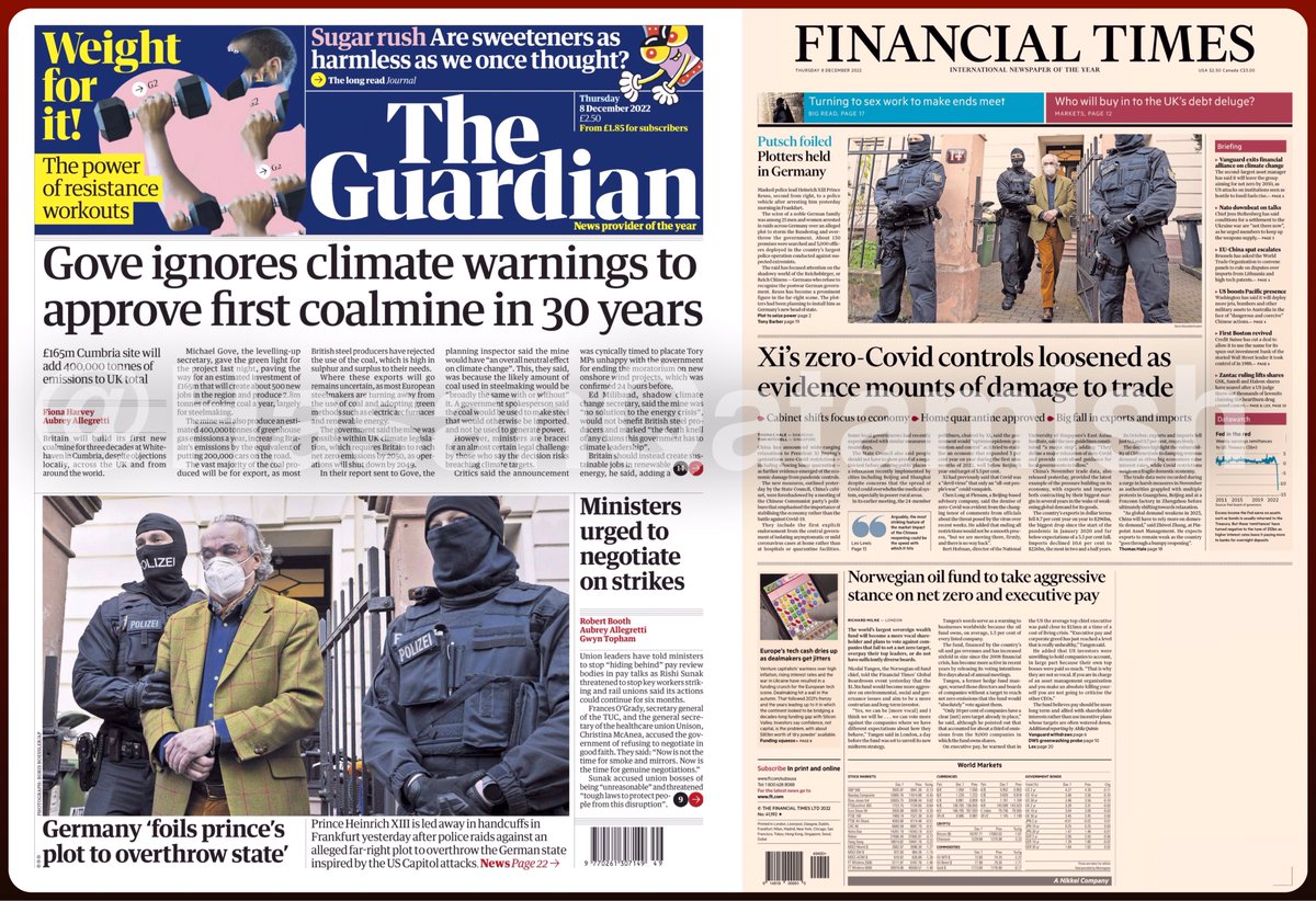 أعلنت السلطات في #ألمانيا أن الشرطة تمكنت أمس من تفكيك شبكة تنتمي لحركة "مواطني الرايخ - الإمبراطورية " Reichsbürge المتطرفة، وألقت القبض على عدد من أفرادها اعتقلوا بتهمة التخطيط للإطاحة بحكومة البلاد في انقلاب عسكري !!