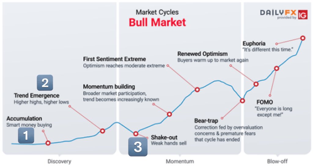يبدأ "الخوف من ضياع الفرصة" مع تسارع الاتجاه، ينضم المتداولين الأقل إطلاعا في السوق وتصبح التغطية الإعلامية اليومية واسعة الانتشار.
