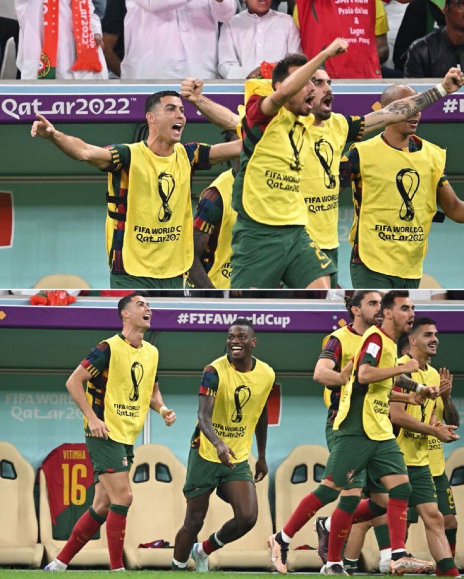 ->لكن الواقع مختلف عندما تلقي نظرة على الصور والنقنقاطع. شوهد كريستيانو رونالدو يحتفل ويبتسم على كل هدف من أهداف فريقه.