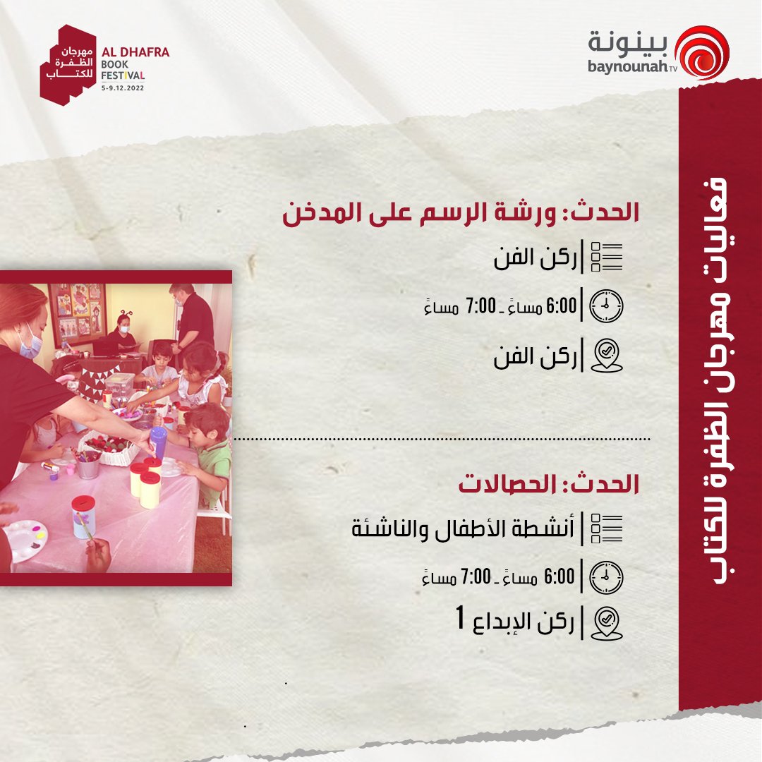 أمسيات شعرية وعروض ترفيهية وأنشطة مميزة.. ضمن فعاليات اليوم الخامس من #مهرجان_الظفرة_للكتاب 📖🇦🇪