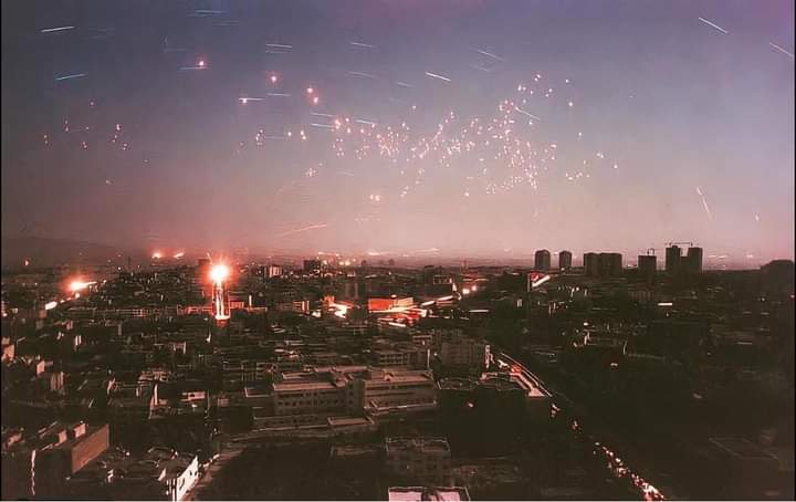 صورة لسماء العاصمة الإيرانية #طهران وهي تشتعل بصواريخ الحسين اطلق العراق 58 صاروخ اردتهم بين قتيل وجريح رداً على قصف إيران لمدرسة بلاط الشهداء بصاروخ Scud B ليبي اهدي من القذافي. والتي تعتم عليها الاعلام الإيراني وفضحها الأعلام العراقي⬇️