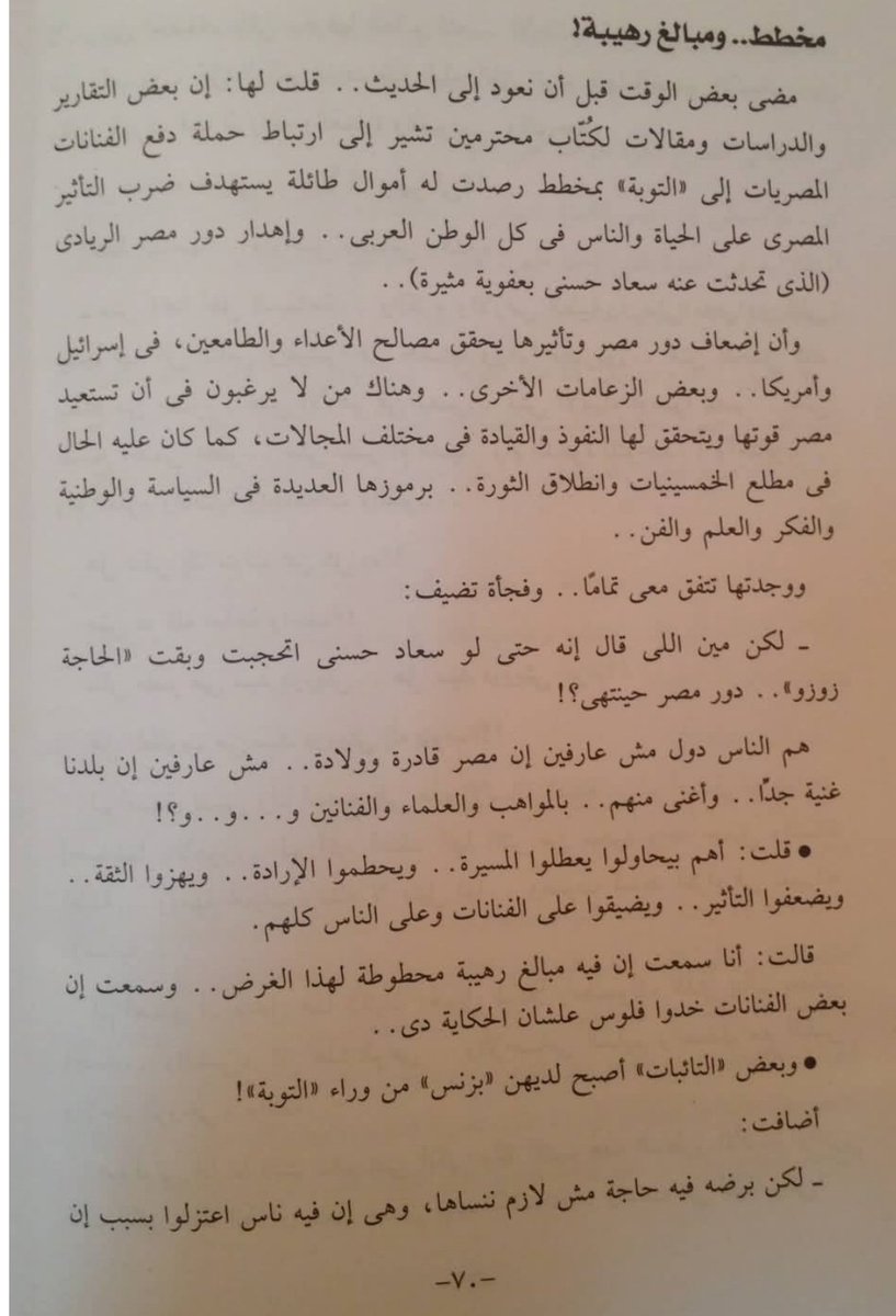 تعرف..أنا عارفه الجماعات دي عاوزه ايه وعارفه ان الشيوخ دافعين فيا مبلغ وقدره عشان أى واحده فيهم تخلينى أعتزل وأتحجب وأقول الفن حرام..
