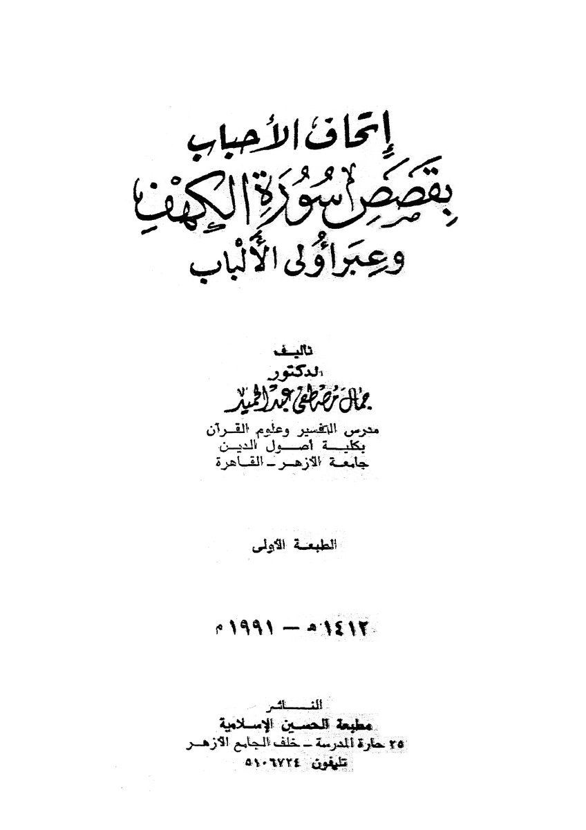 6ـ اتحاف الأحباب بقصص سورة الكهف وعبر أولي الألباب ج2، ط1 سنة 1412هـ = 1992م