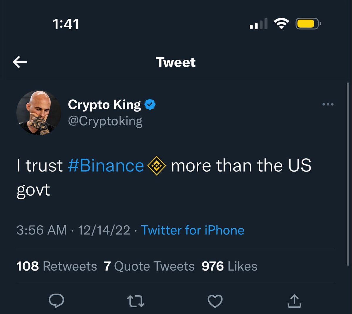 كلام مضحك ويفشّل. وكان الأفضل مطالبة باينانس بالتوضيح والتصحيح.