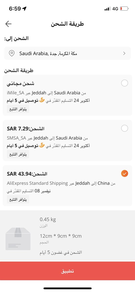 تبغى تطلب من علي اكسبرس والتوصيل من المستودع السعودي ؟