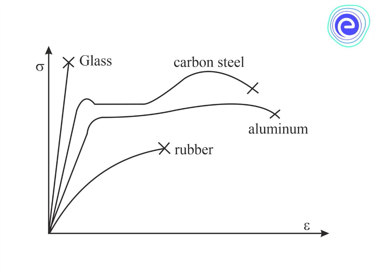 مع زيادة القوة، نصل لأعلى قيمة للقوة اللازمة لتغيير أبعاد المادة وتسمى قوة الشد Tensile Strength في النقطة D وهي معلومة مهمة في علم المواد. (يتبع)