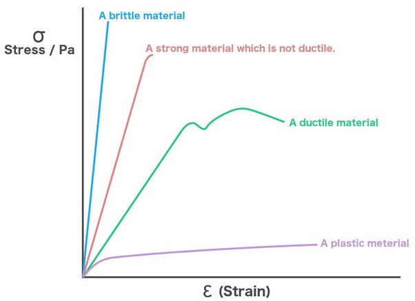 محور X في المنحنى هو قياس التمدد Strain للمادة أثناء إختبارها. ويتم قياسه بقسمة مقدار تمدد المادة أثناء شدها (بالميليمتر) على الطول الأصلي للمادة قبل بدء الأختبار. المحور Y يقيس إجهاد المادة Stress وهو القوة (Force) اللي تتسبب بتغيير أبعاد المادة ووحدتها نيوتن لكل متر مربع (يتبع)