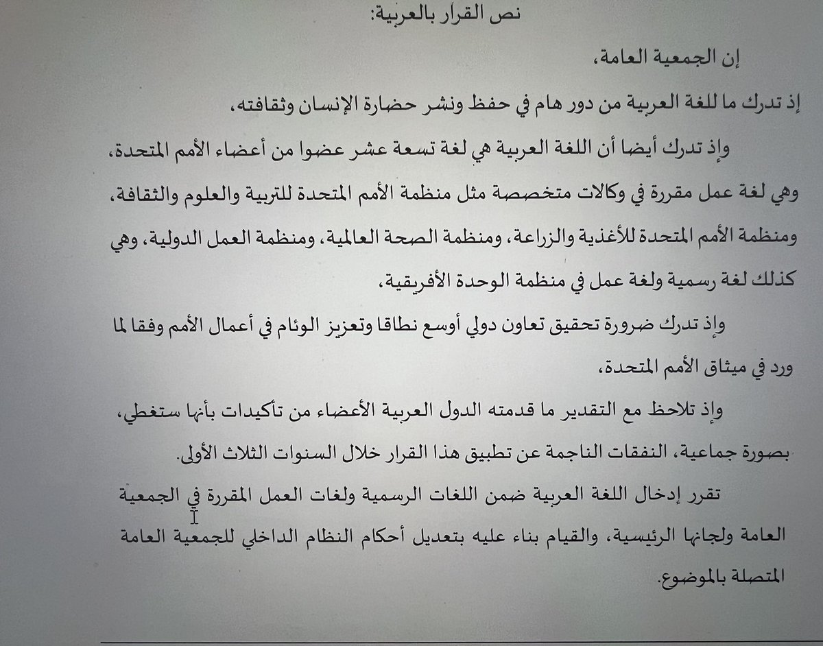 هذه الجملة التي قرأتها 👆 ليست عادية وتستحق فلمًا وثائقيًا وتفعيلًا ميدانيًا للاستفادة من كل مكتسباتها، جملة طلبت الكثير والكثير من العمل الدبلوماسي لتحقيقها والتي بسببها أصبح لدينا يومًا عالميًا للغة العربية.