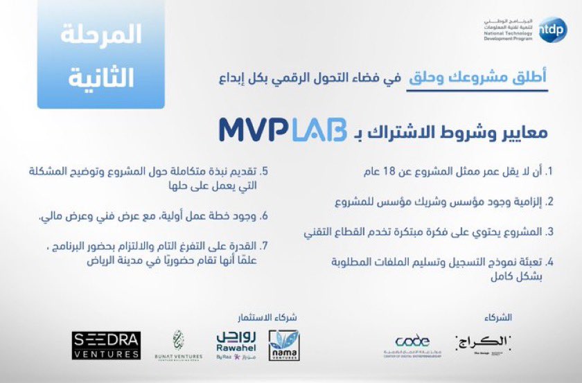 هي مبادرة حكومية تابعة للبرنامج الوطني لتنمية تقنية المعلومات والهدف منها دعم وتمكين أصحاب المشاريع التقنية المبتكرة من تطوير افكارهم وتسريع النمو .