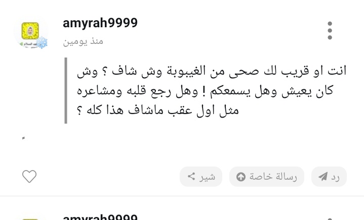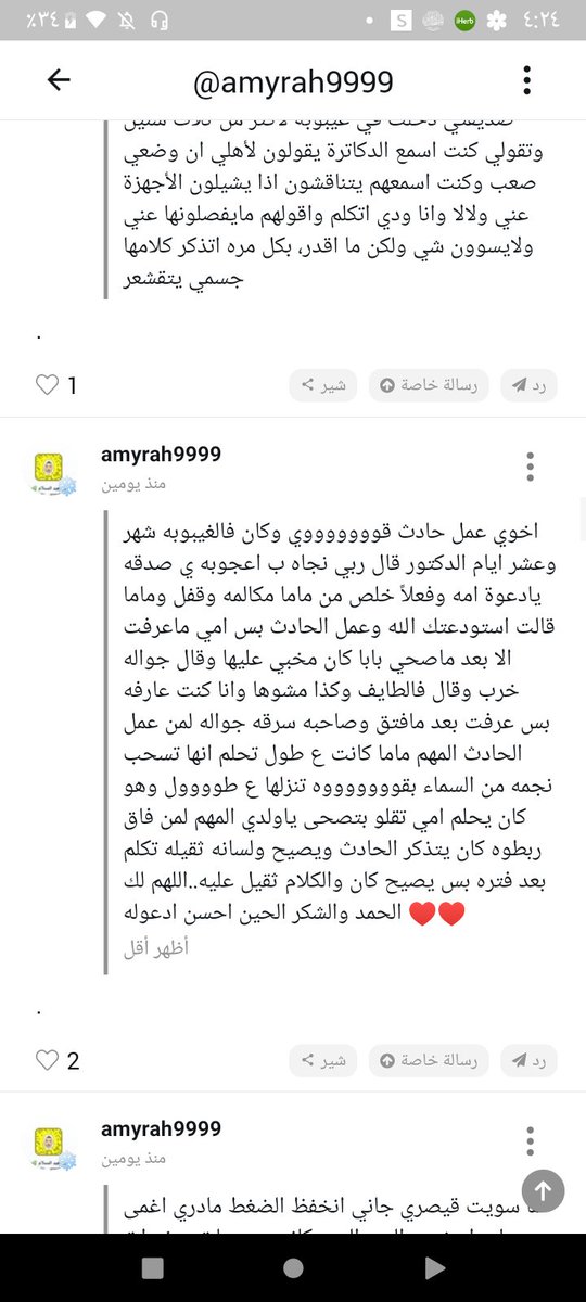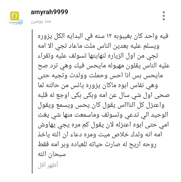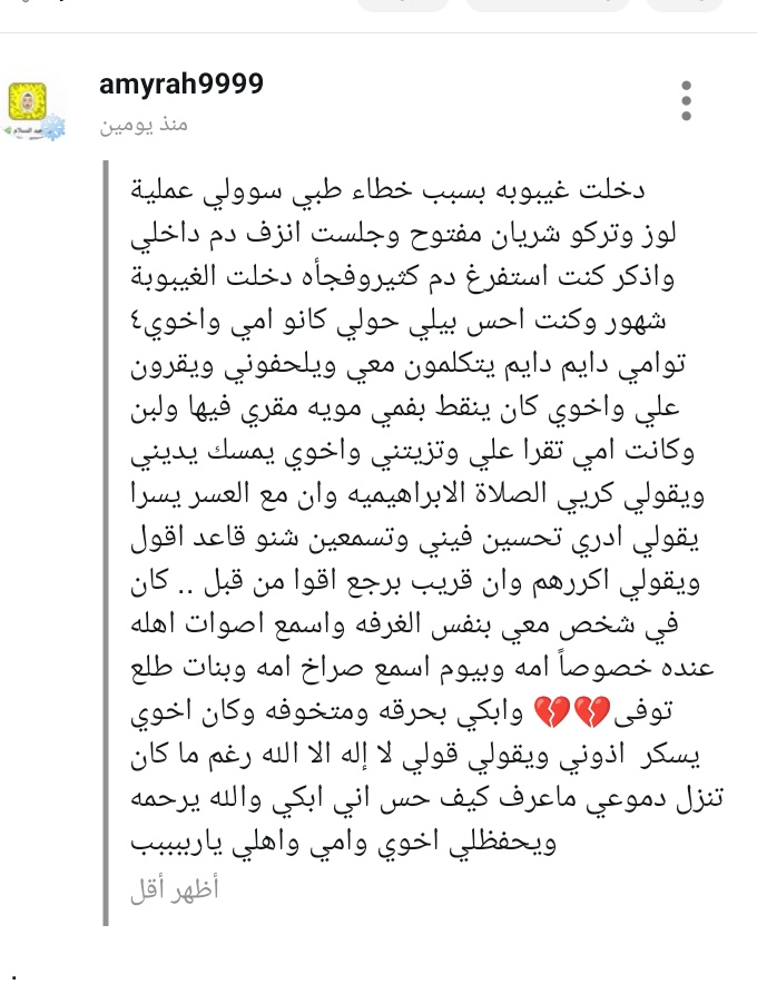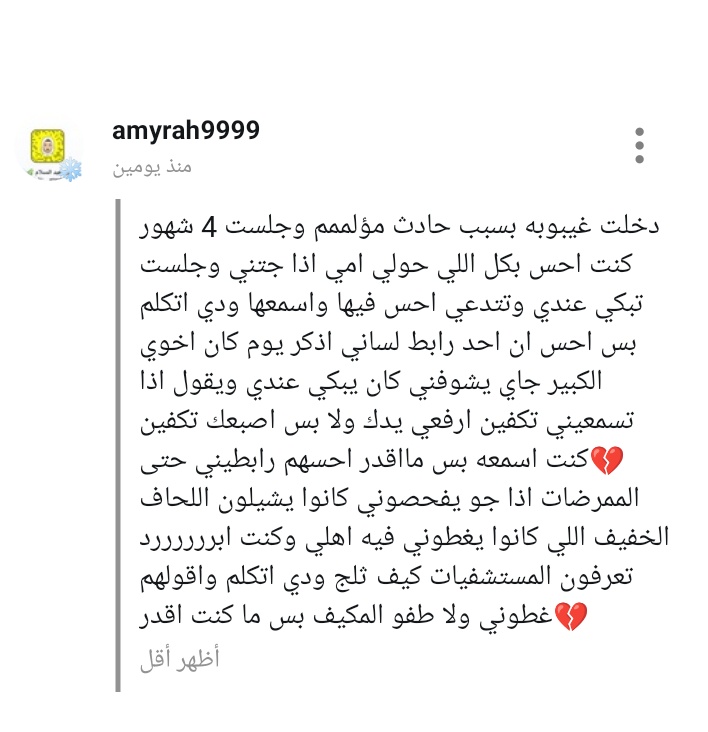 لوله تذكرت جدي الله يرحمه يوم كان يبكي وهو بالغيبوبه لما سمع صوت امي وخالاتي يكلمونه 😔