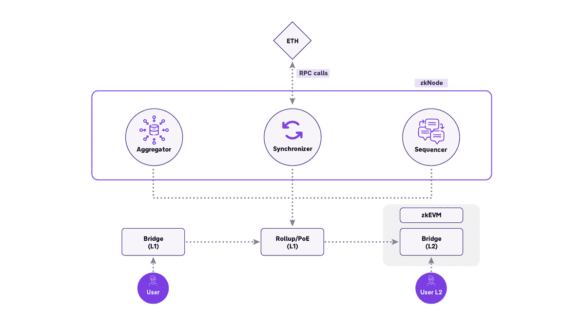 Other than the PoE consensus mechanism, there are 4 major components of the Polygon zkEVM architecture: