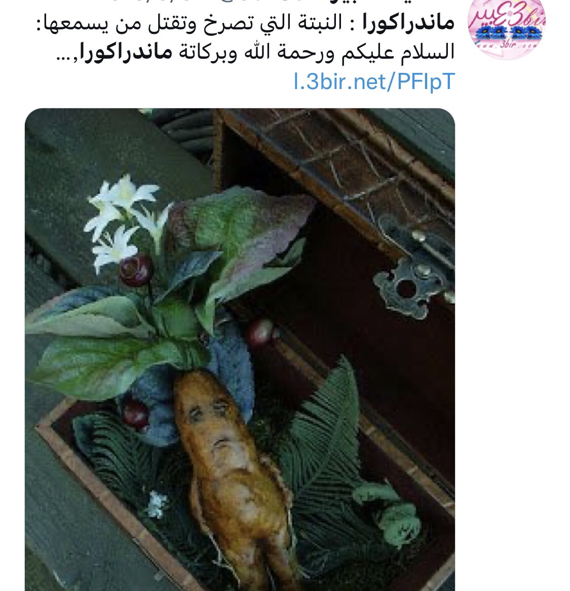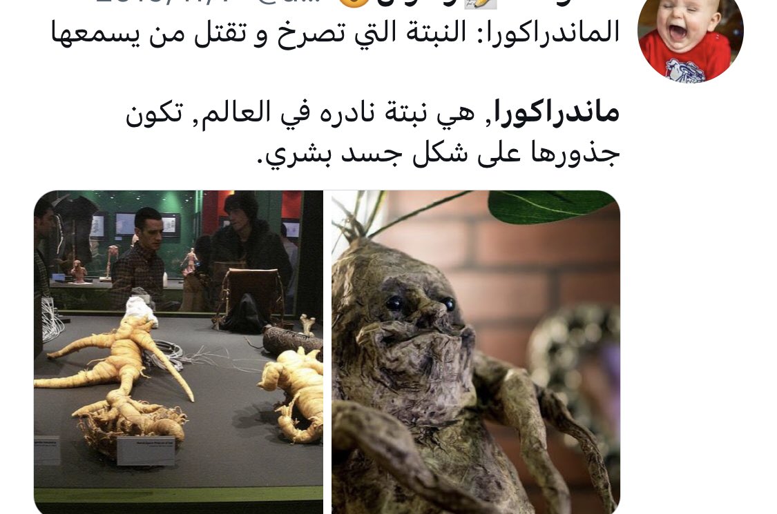لكن لما يصل الانسان للجذر سيمو—ت بسبب الصرخة المرعبة التي يطلقها النبات في اللحظة هذه