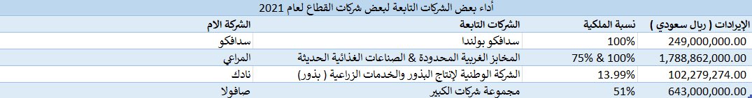 ▪︎الشركات التابعة للقطاع ومقارنتها: استحوذت الشركة السعودية لمنتجات الألبان والأغذية ( سدافكو ) عام 2018 على ميليكوما أس بي زد بنسبة ملكية 76% عبر شركة سدافكو بولندا بمبلغ 120 مليون ريال سعودي وأدى ذلك لتوسع ونمو الشركة.