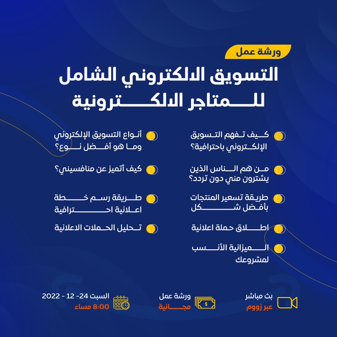موعدنا مع اكبر ورشة عمل مجانية بعنوان التسويق الالكتروني الشامل للمتاجر الالكترونية🔥🔥